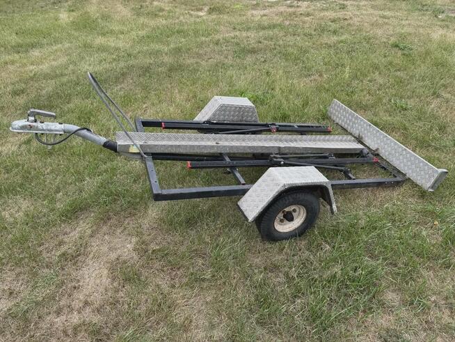 2Przyczepka na motocykl lub 2 rowery – niska i wygodna do załadunku Solidna i praktyczna przyczepka przeznaczona do ...