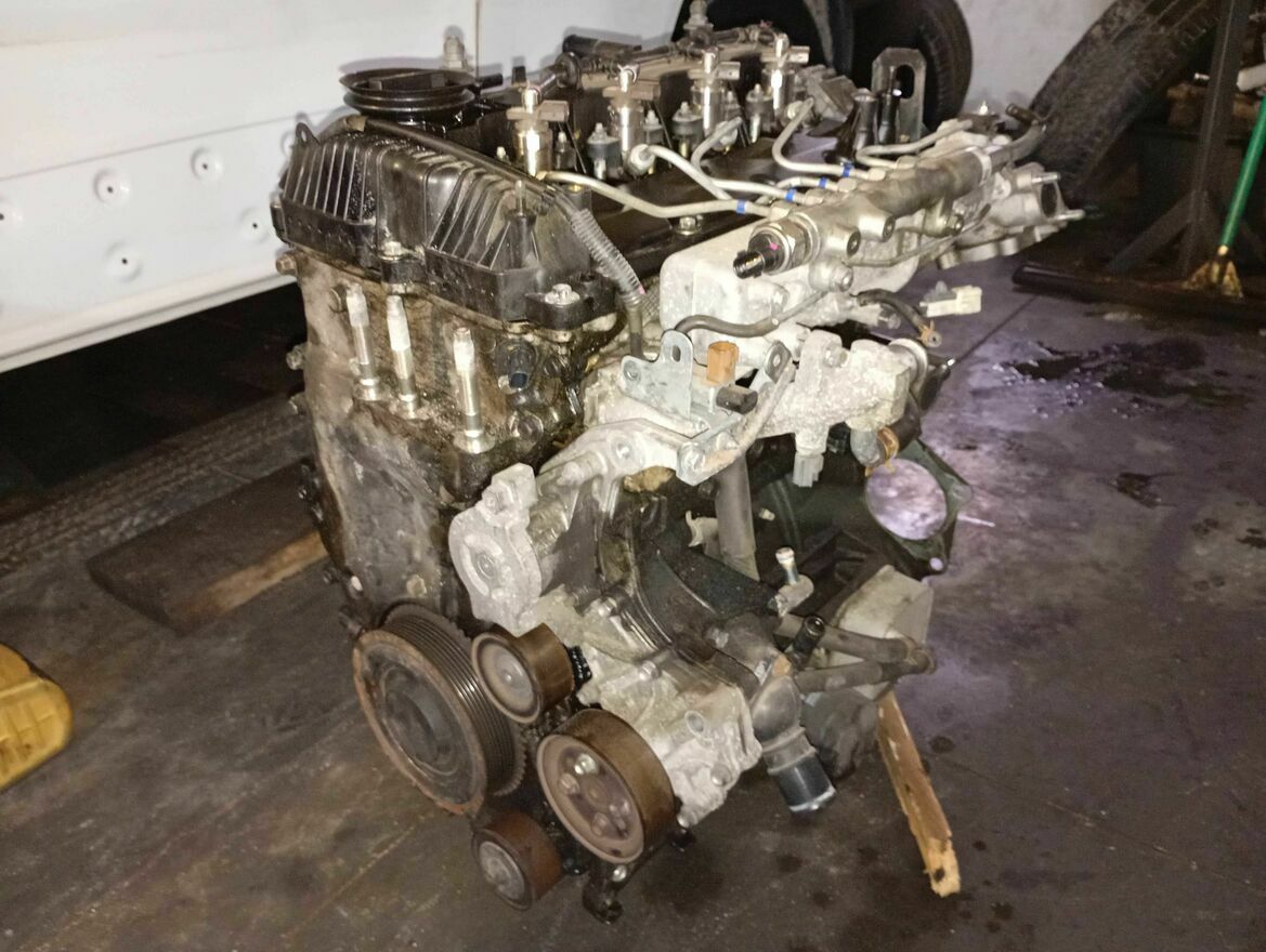 Mam do sprzedania uszkodzony kompletny silnik Mazdy, 2.2 diesel, symbol R2AA (cały osprzęt: wtryski, sprzęgło, turbina, pompa oleju, etc.) . Silnik pochodzi od Mazdy CX7, rocznik 2012 (listopad), po lifcie. Filtry i olej wymieniane zawsze na czas. Przebieg do awarii 196 tys. km.Uszkodzenie silnika to obrócona panewka na trzecim korbowodzie (awaria względnie szybko wychwycona co zapobiegło wystąpieniu większych zniszczeń). Samochód przed demontażem motoru był na chodzie (blok cały), odpalał bez problemu i pracował względnie cicho na zimnym. Dla zainteresowanych mogę podesłać filmik z pracy silnika.